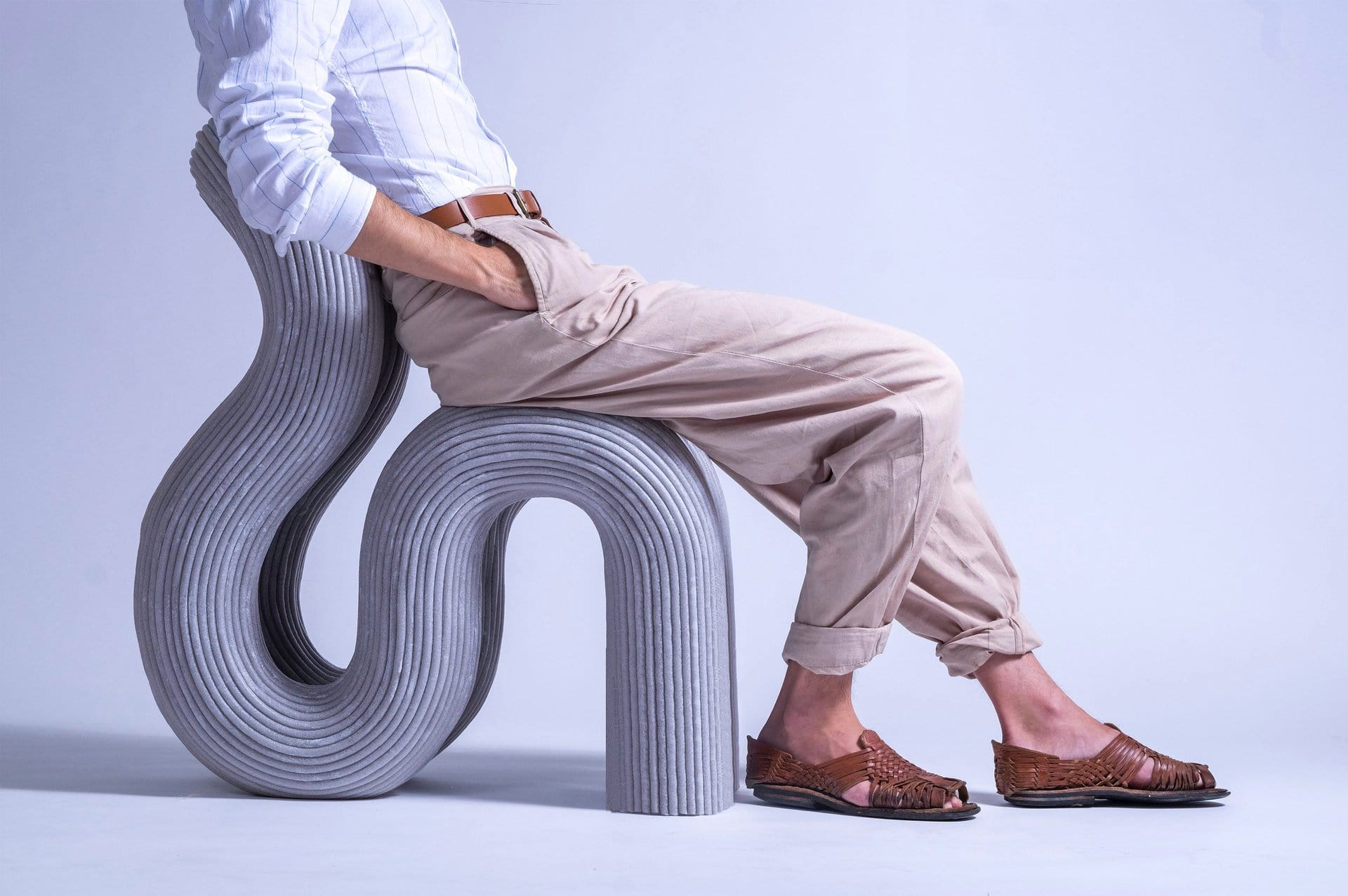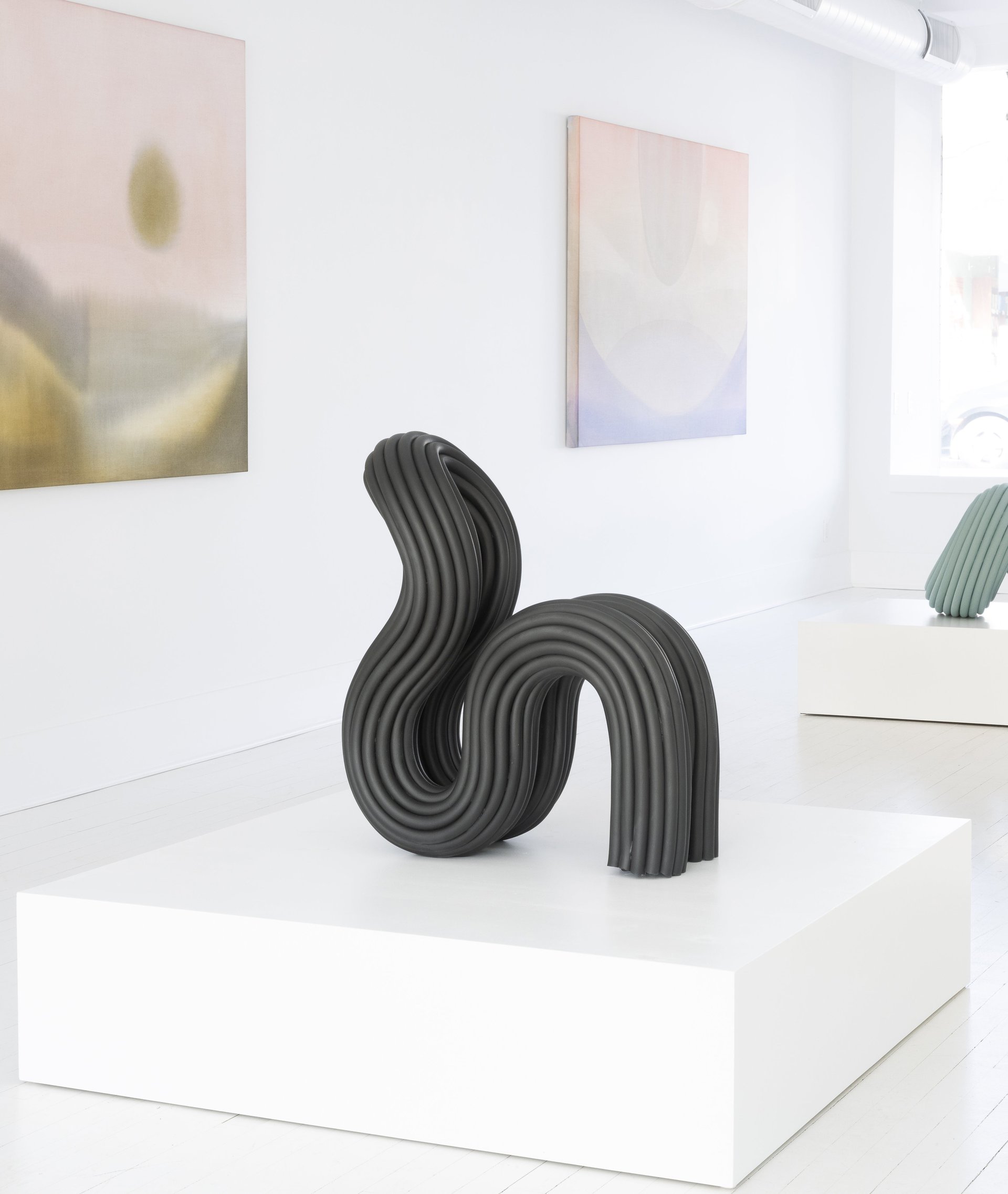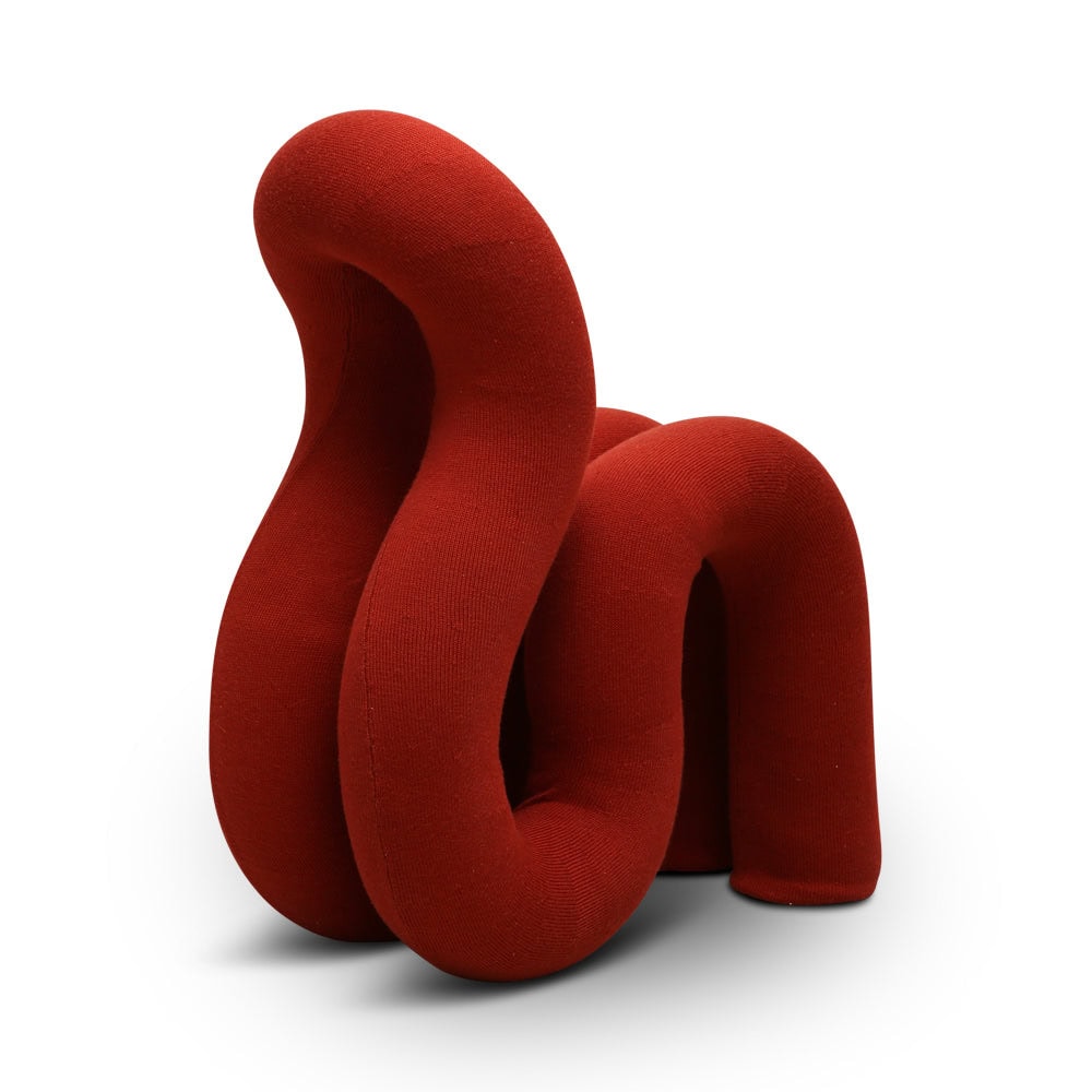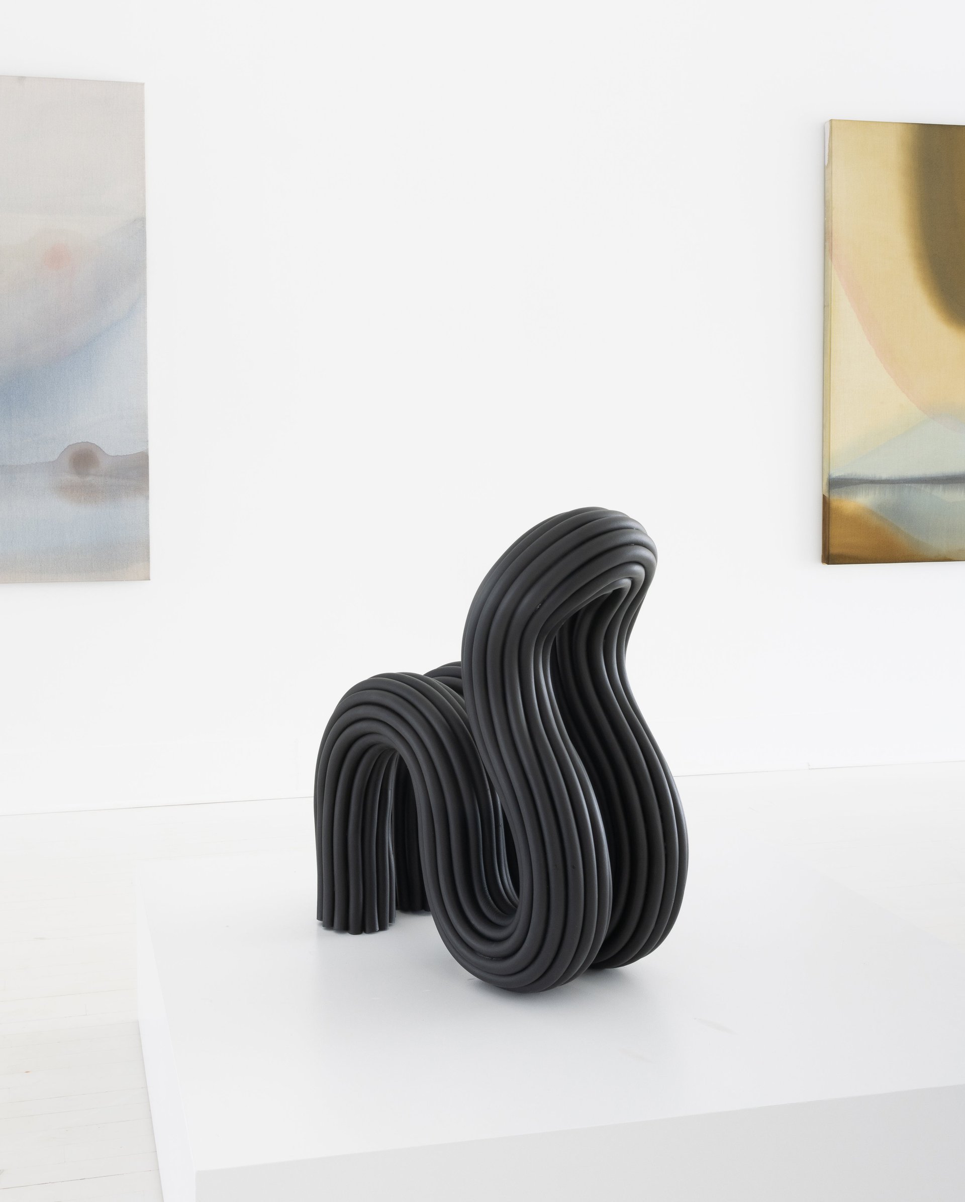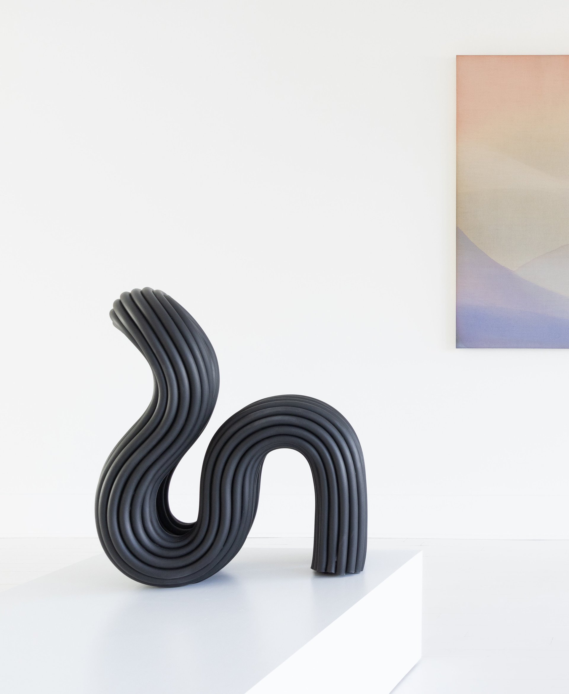 A chair composed of seven curving gestures of a soft cylinder. The form is rigid yet soft.
