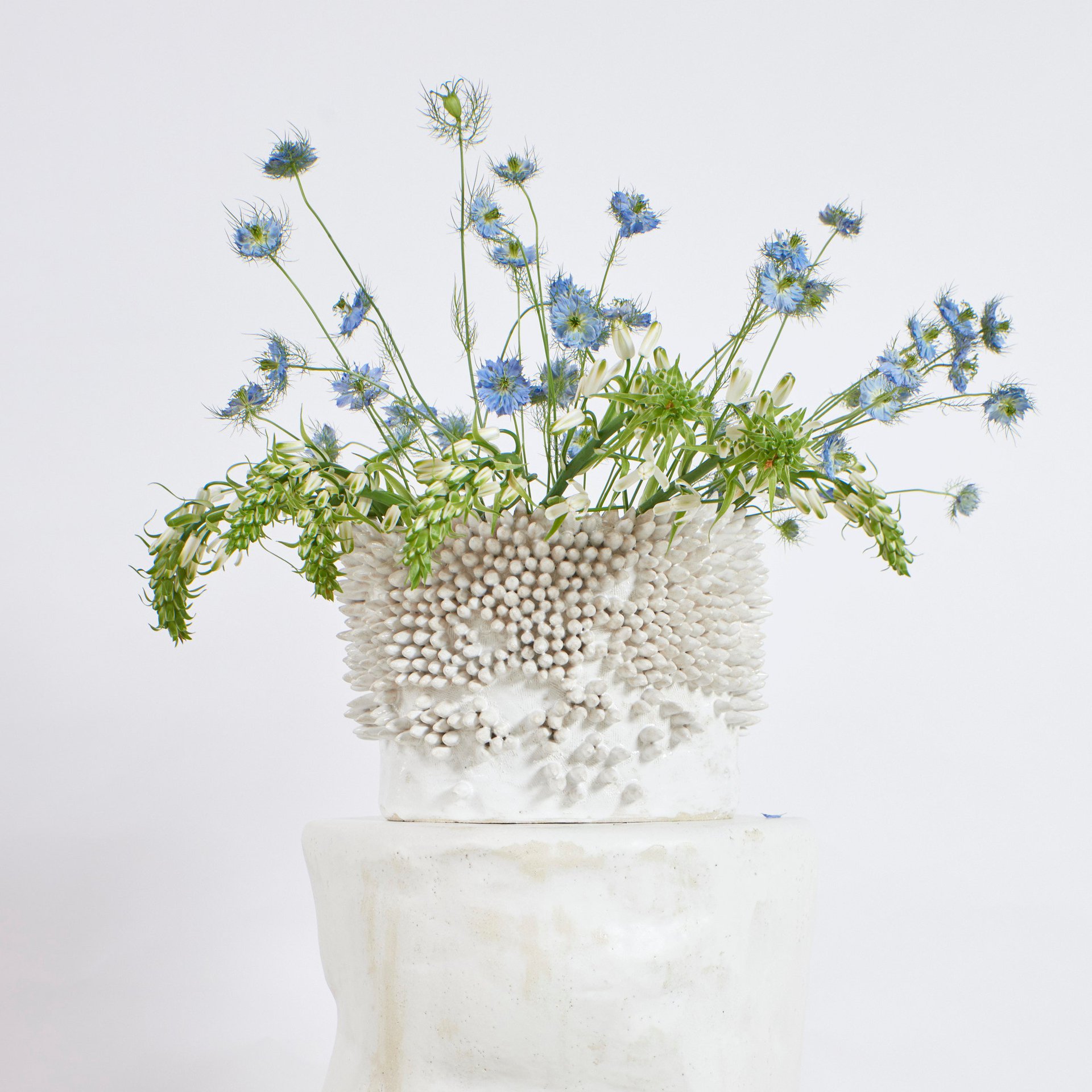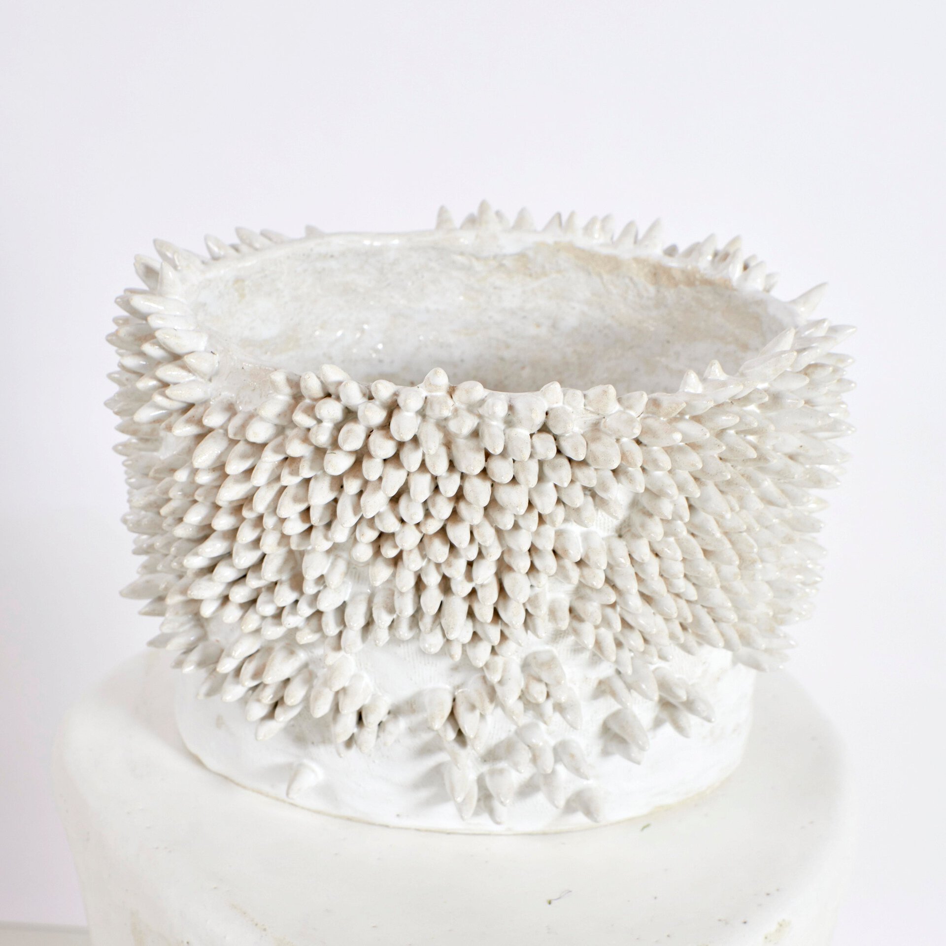 Artisanal ceramic vase created by skilled artisans in Project 213A’s own ceramic workshop. The entire vase is covered with “appuntito” spikes with some bare areas showing the shape of the vase.