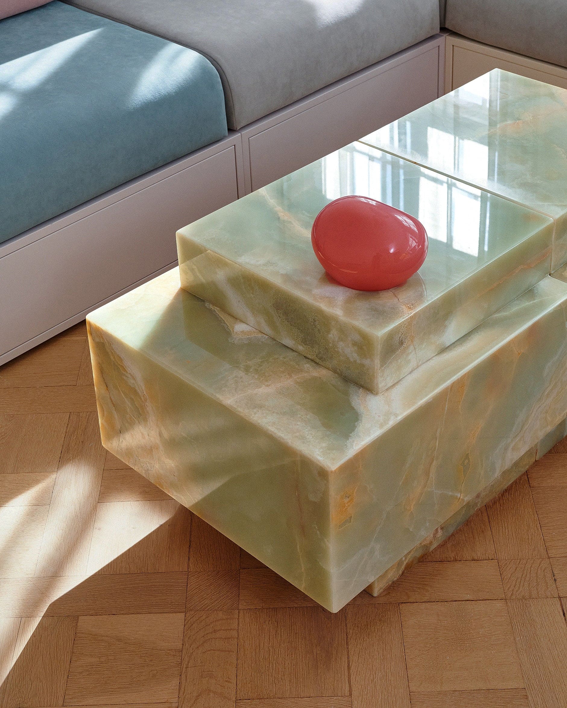 Two Piece coffee table. Shown in Green Onyx, available in custom sizes and materials.