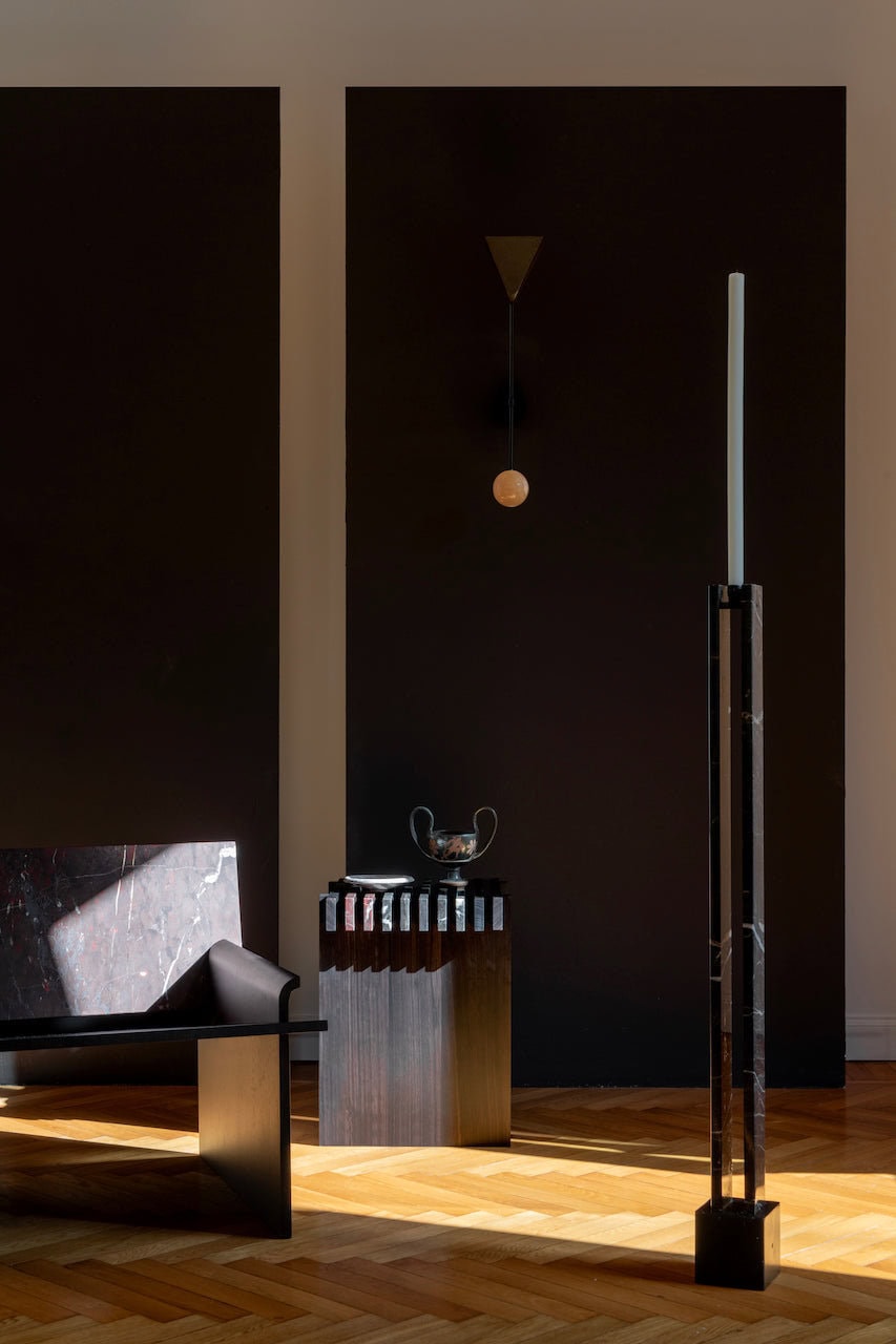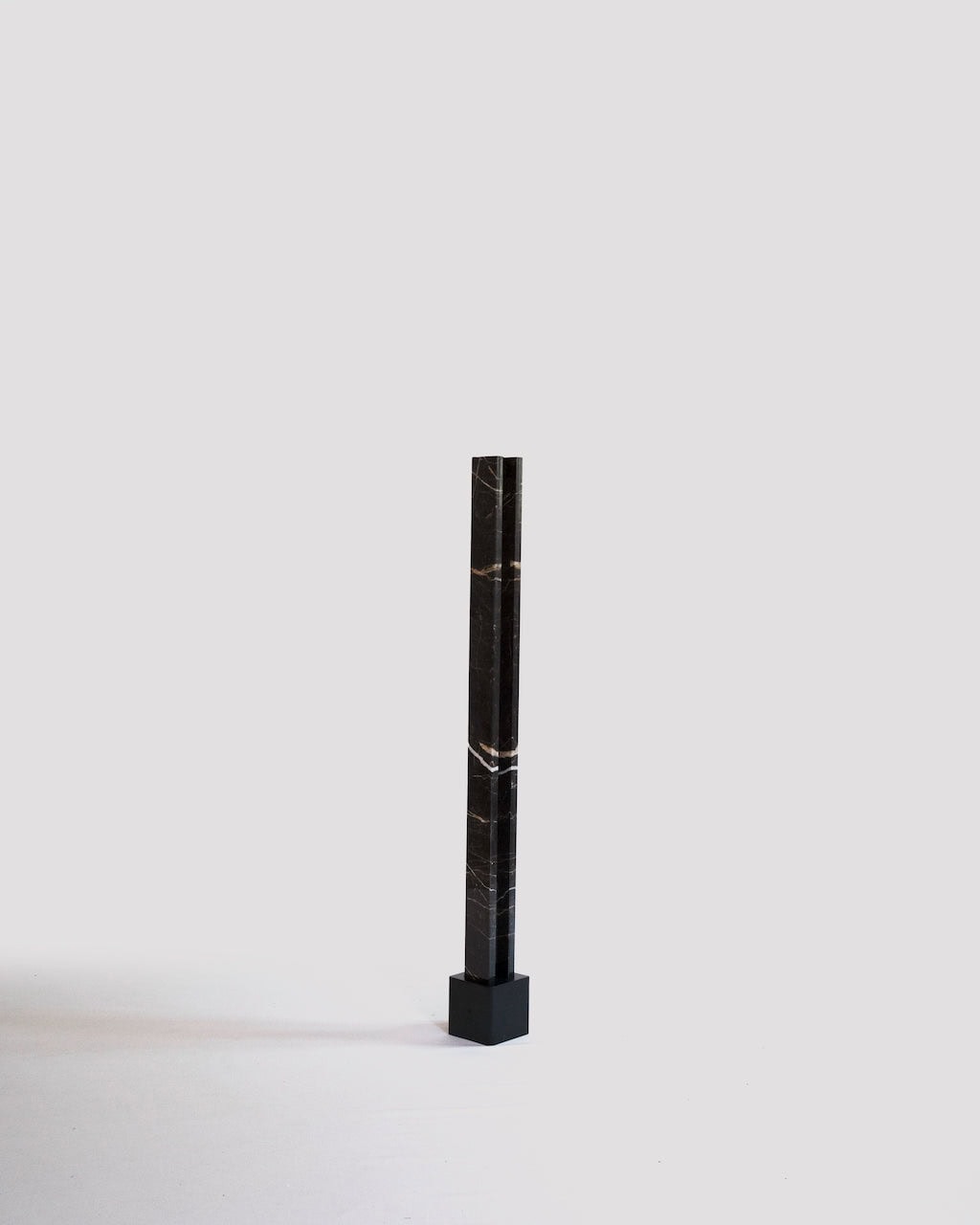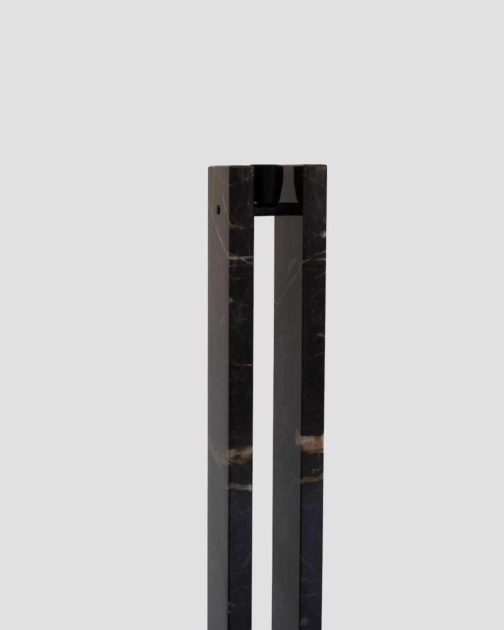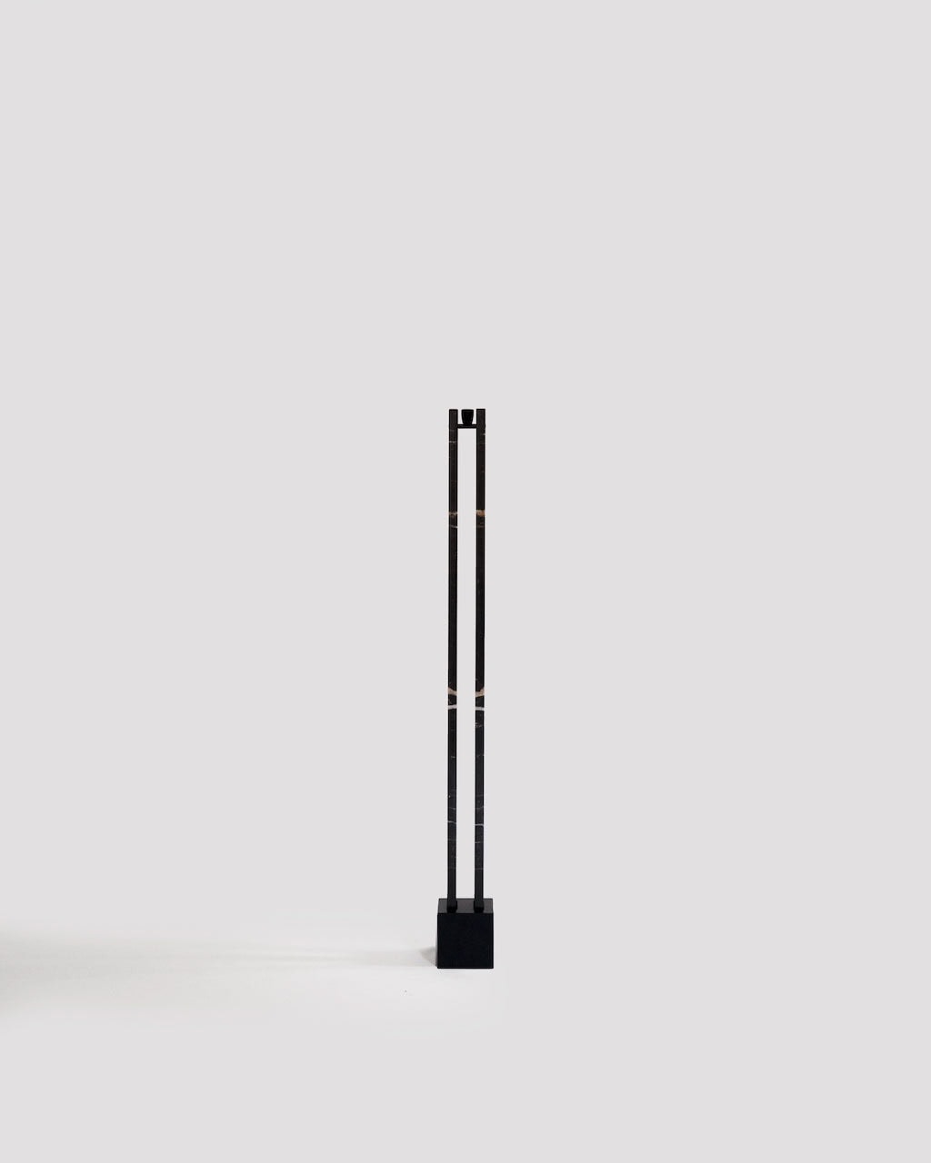 The Congresso Floor Candlestick, where sculptural elegance meets the warmth of candlelight. This unique piece transforms rigid architectural forms into a delicate interplay of light and shadow, ideal for dining rooms or entrances. Each candlestick is a numbered edition, unique due to the individual nature of stone. Crafted with marble from Italy and metal from Poland.