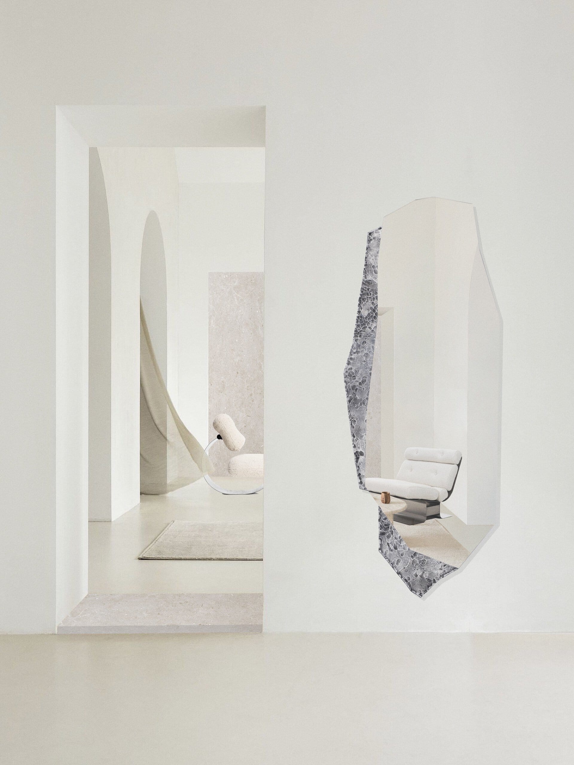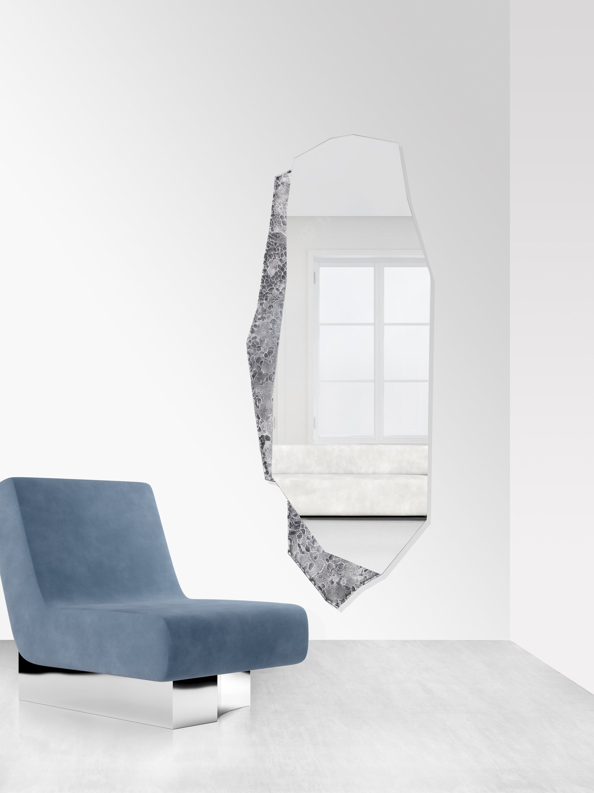 Inspired by the fragments of ice forming each winter, the mirror represents the traces of an ephemeral, fragile moment, frozen in the ice.