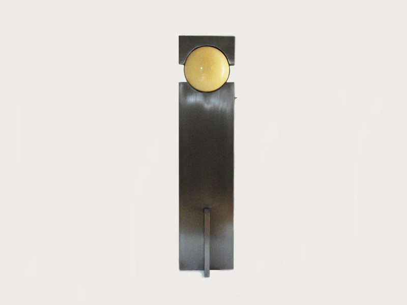 This unique light piece standing freely as a retro futurist monolith, or personal totem of sorts. Hero Lamp takes inspiration from Jean-Pierre Garrault and Henry Delors’ 1971 “Globe Lamp” series to create a unique anachronistic light piece. “Hero Lamp” exhibits traction between past visions of the future and our technological present reminding us of our limited perspective of geological time.