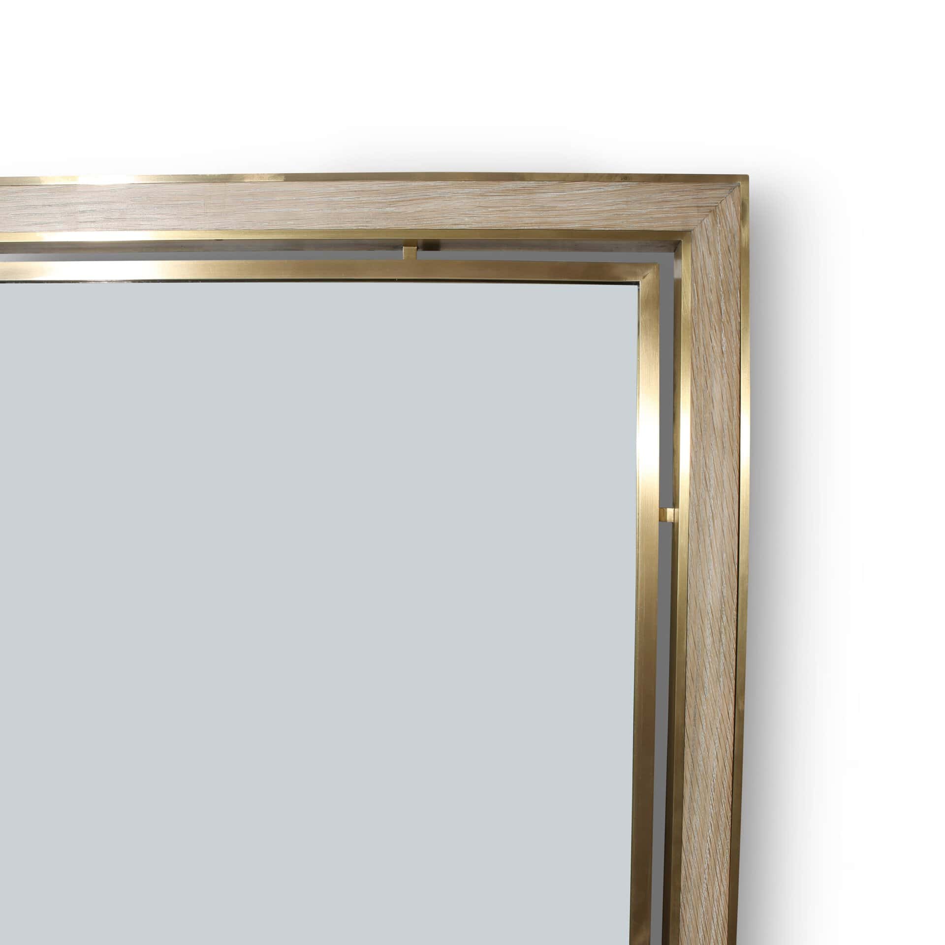 Handmade in Brooklyn, NY featuring a monumental bronze frame inlaid with cerused white oak.