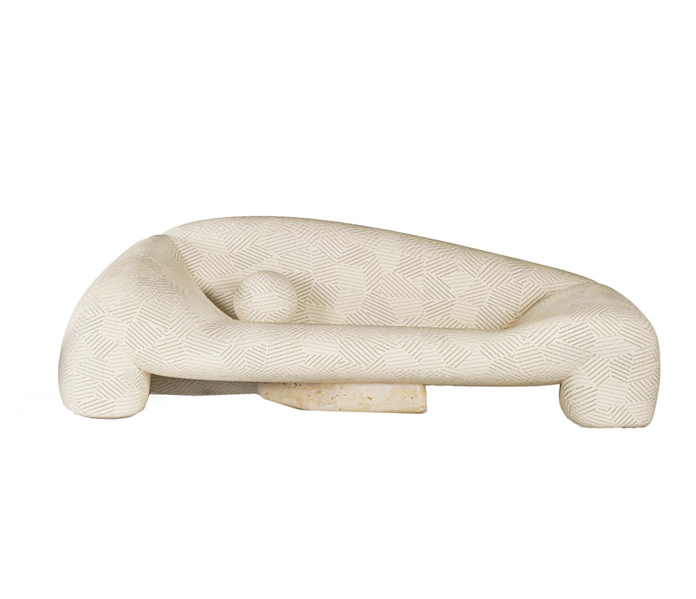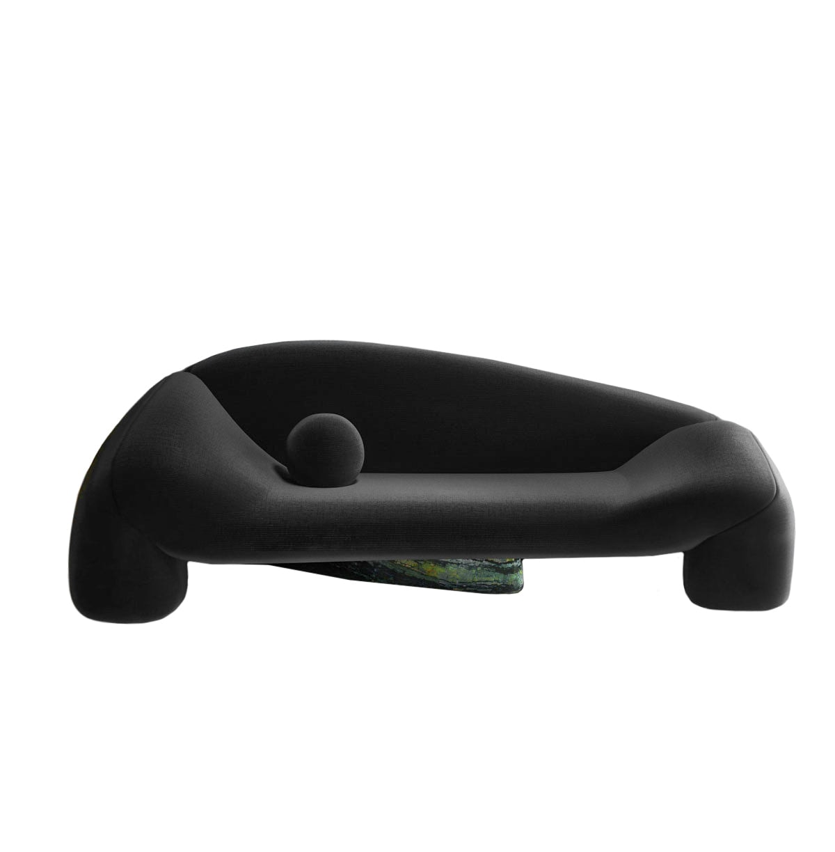 Asymmetrical sofa with a high gloss lacquer base. Base is also available in stone for an additional cost.