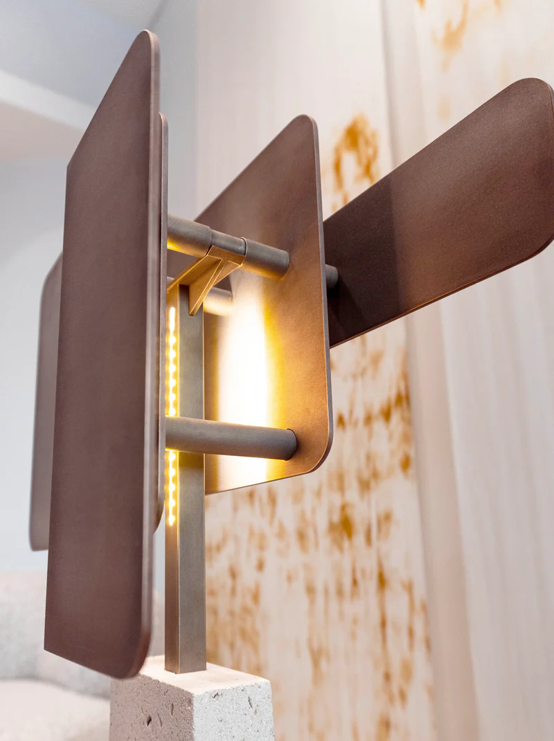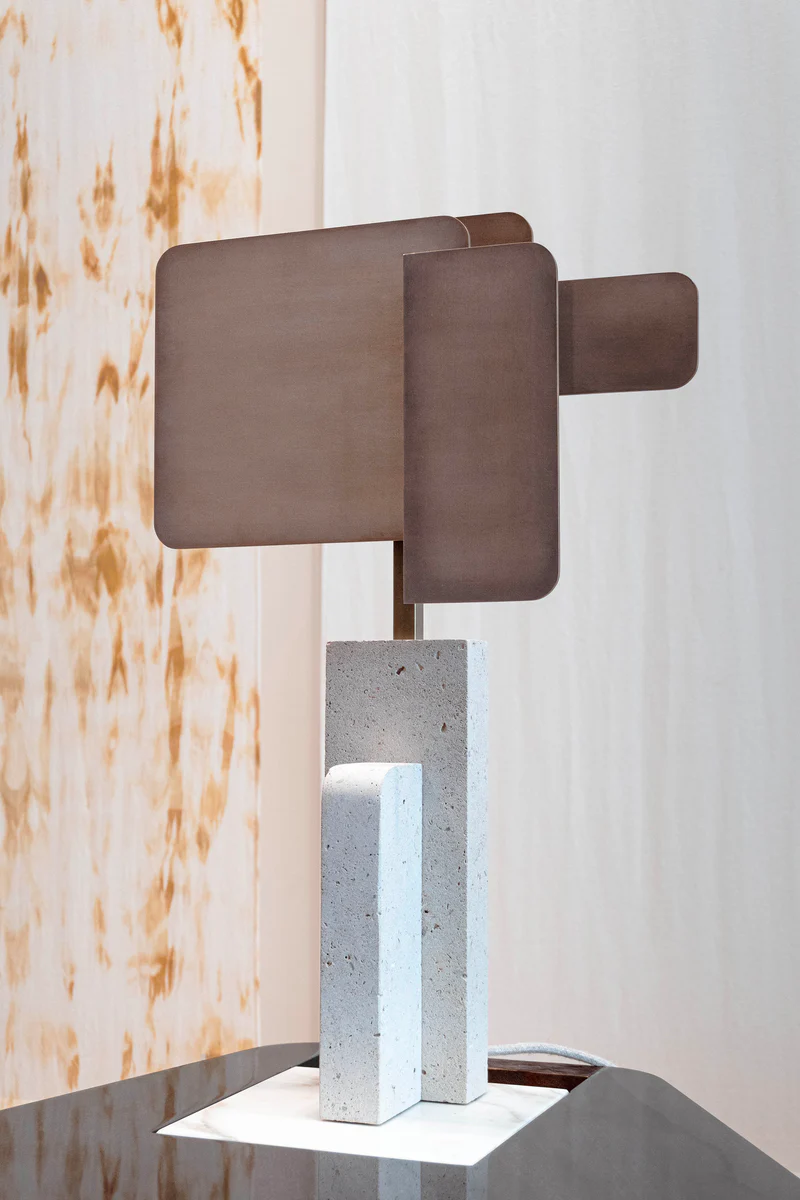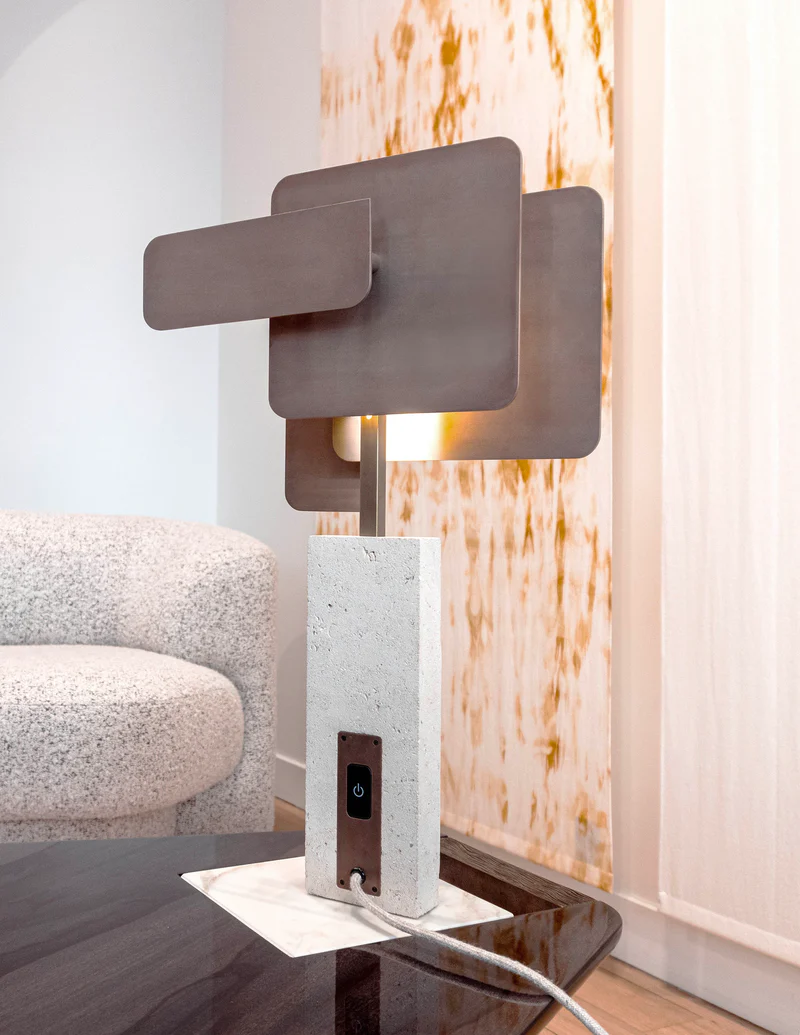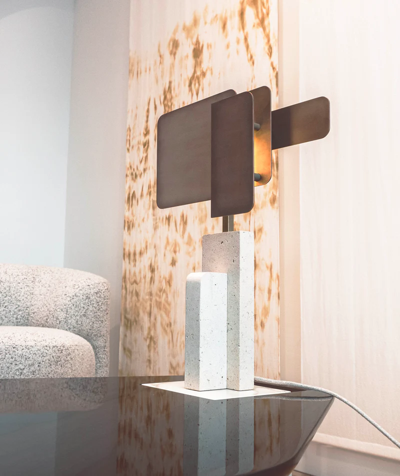 The Lagos Table Lamp embodies a modernist aesthetic, inspired by the cliffs of Algarve. It features highly sought after Parisian limestone from the quarries of Saint-Maximin paired with finely crafted brass with a mineral finish, offering both style and substance. Custom dimensions and finishes are available upon request—please email for additional information.*