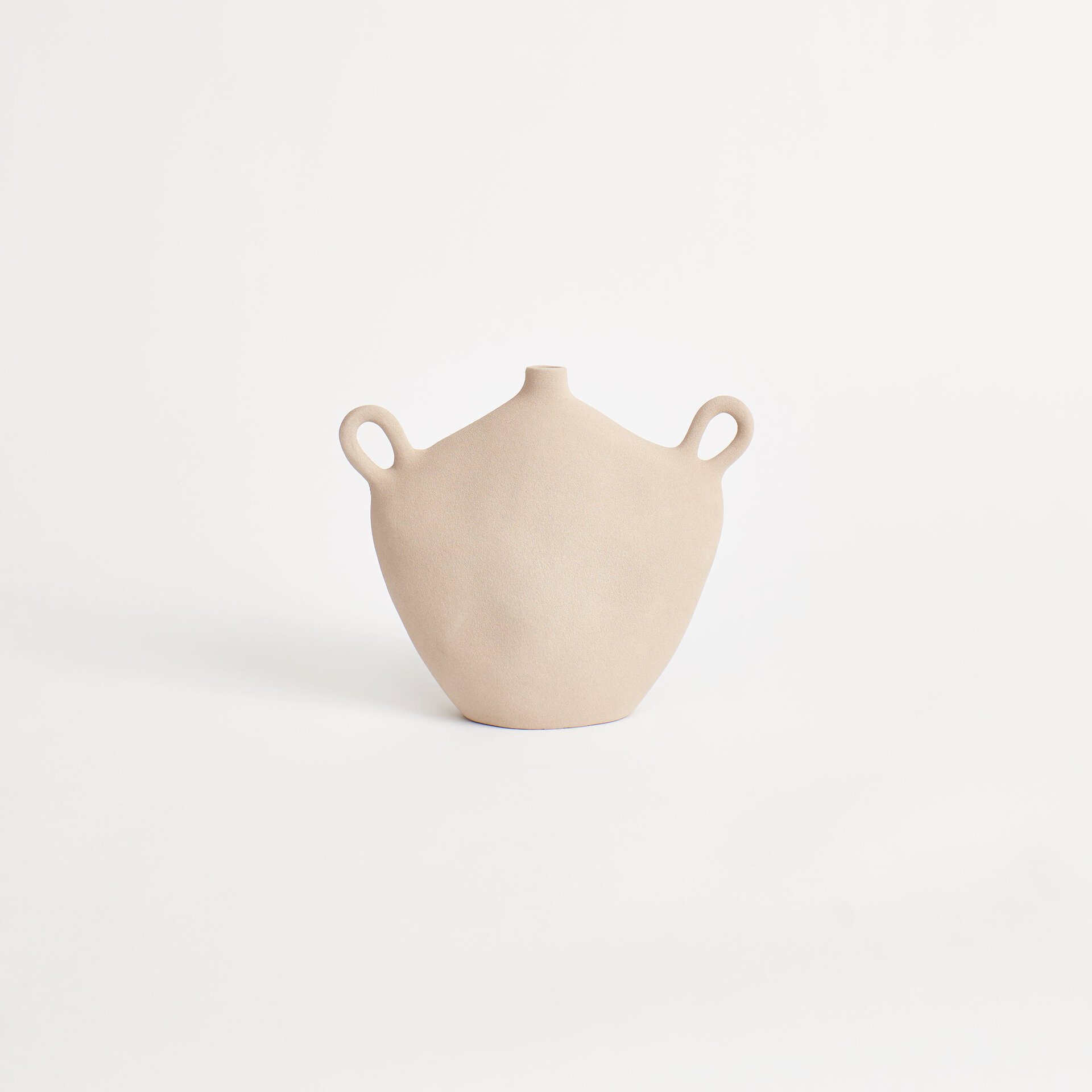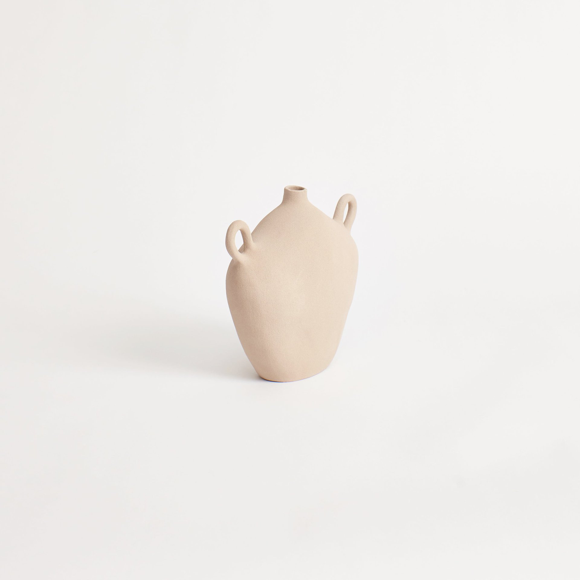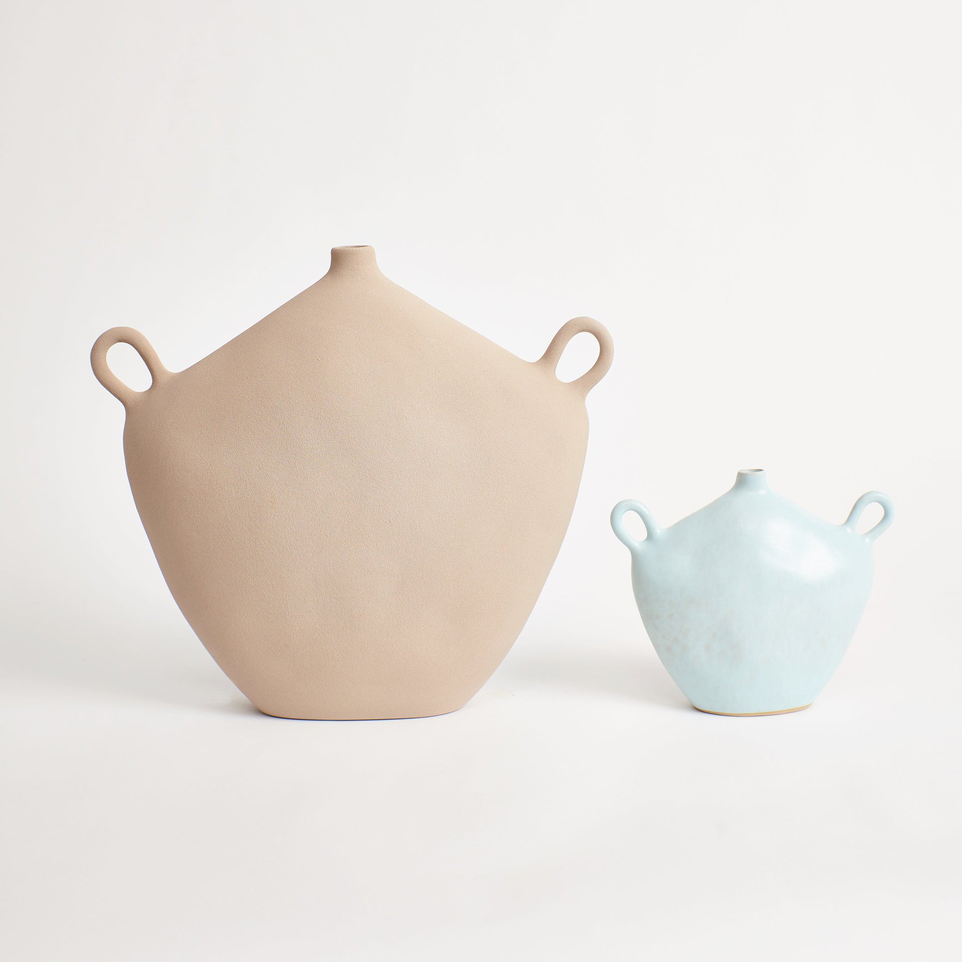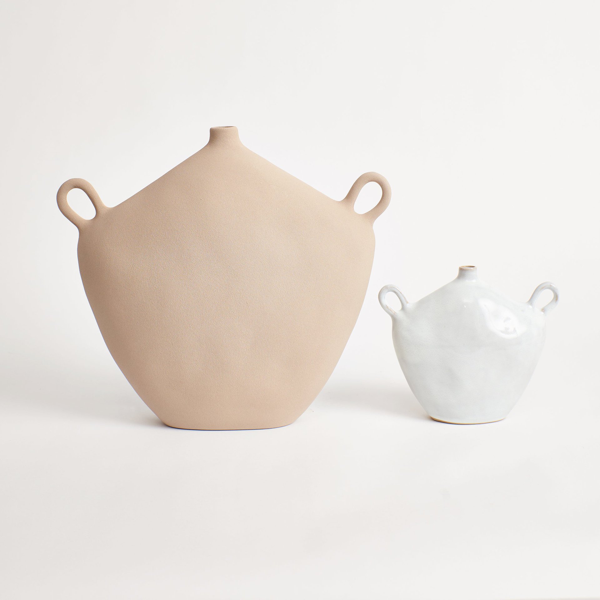 The little sister of the Maria Vessel, still timeless but a little bit more playful. Finished with a contemporary shiny glaze, giving each vase a unique appearance.
