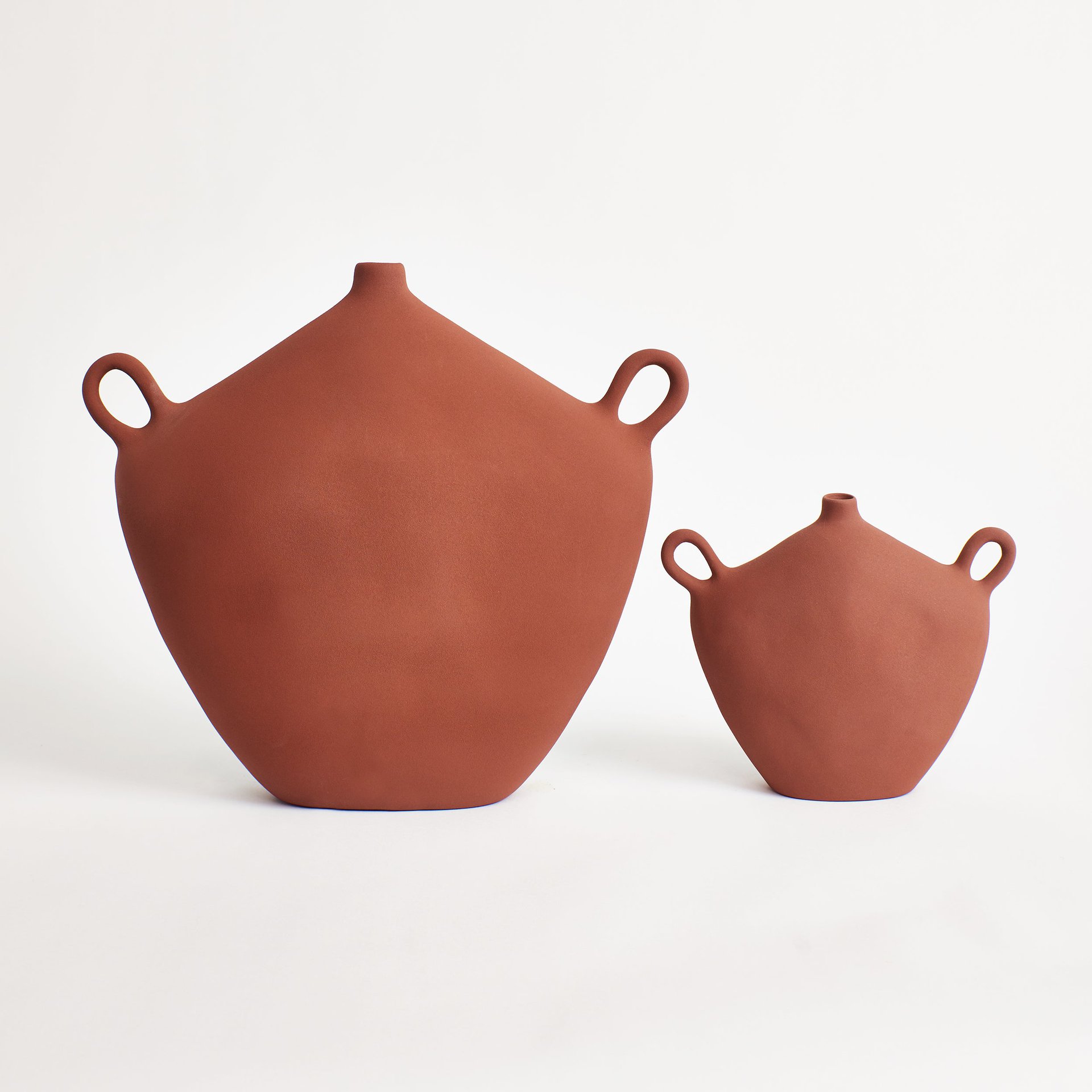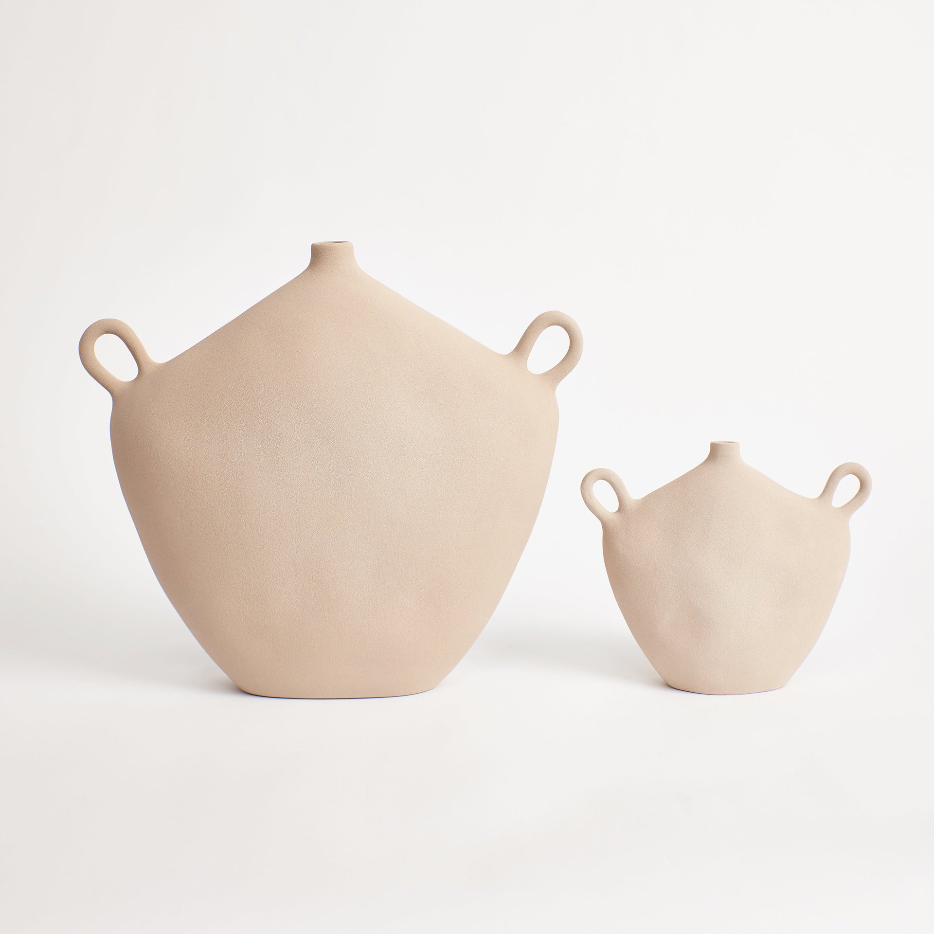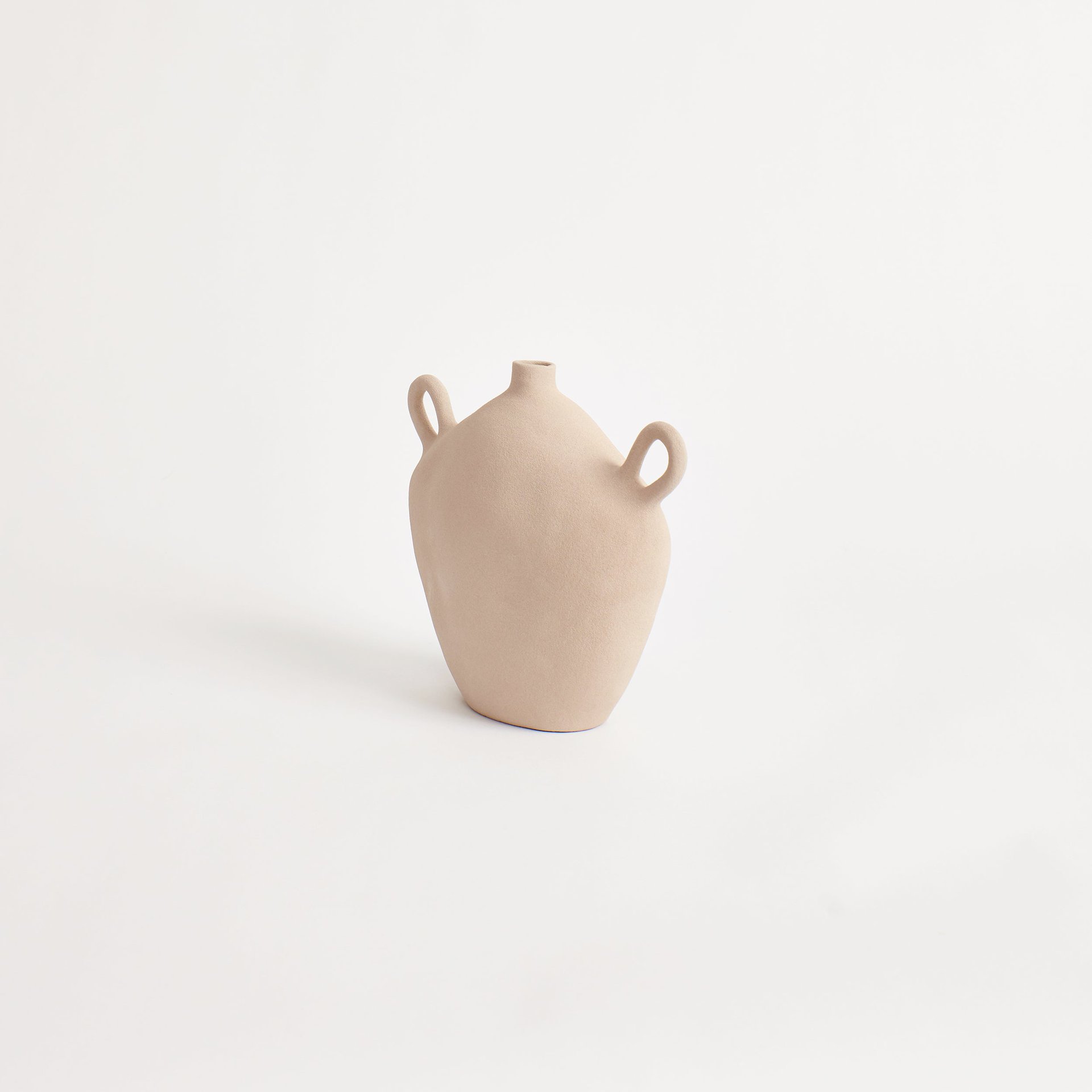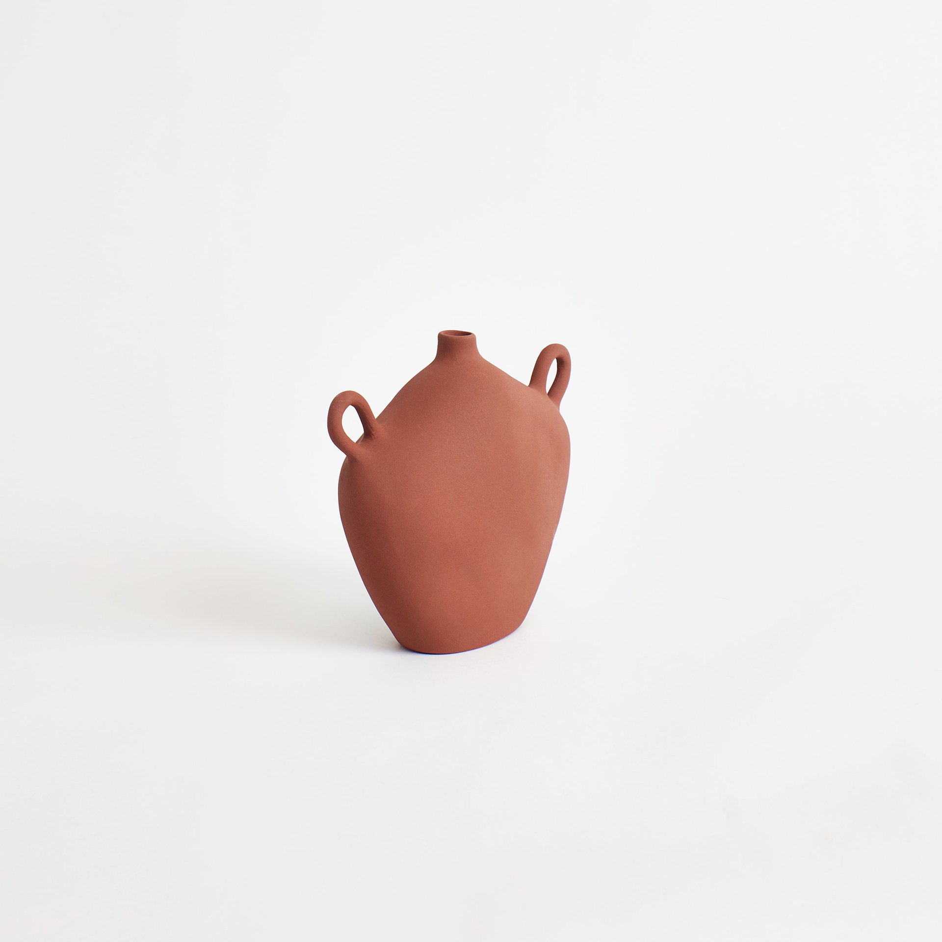 The little sister of the Maria Vessel, still timeless but a little bit more playful. Finished with a contemporary shiny glaze, giving each vase a unique appearance.