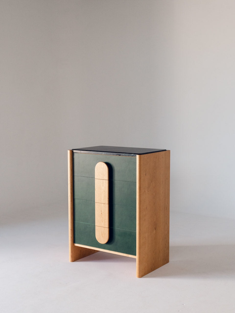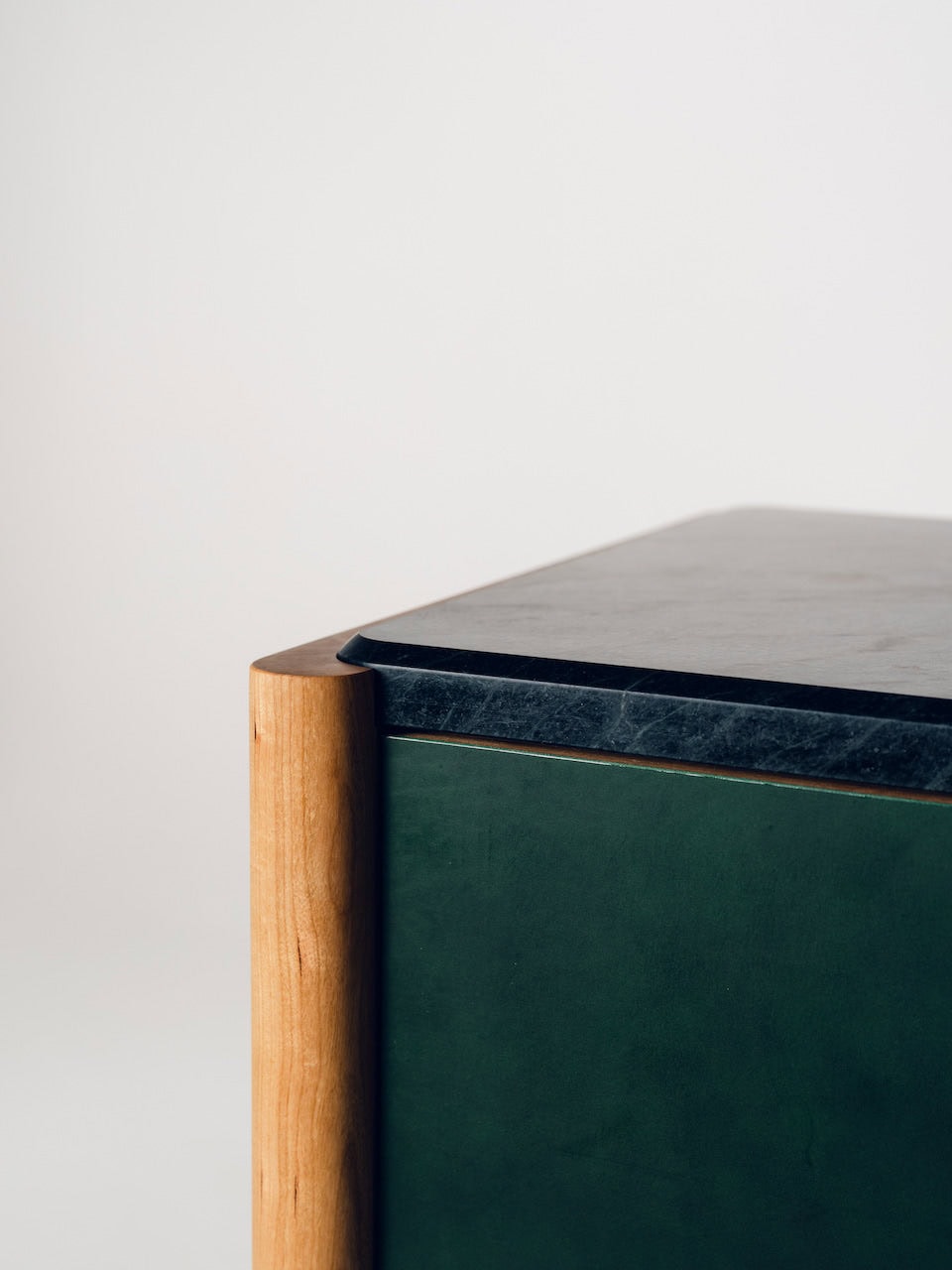 Available in white oak, walnut, cherry, and bleached ash, with marble and veg tan leather *Made to order, custom sizing, finishes, and materials available, lead time 8-10 weeks