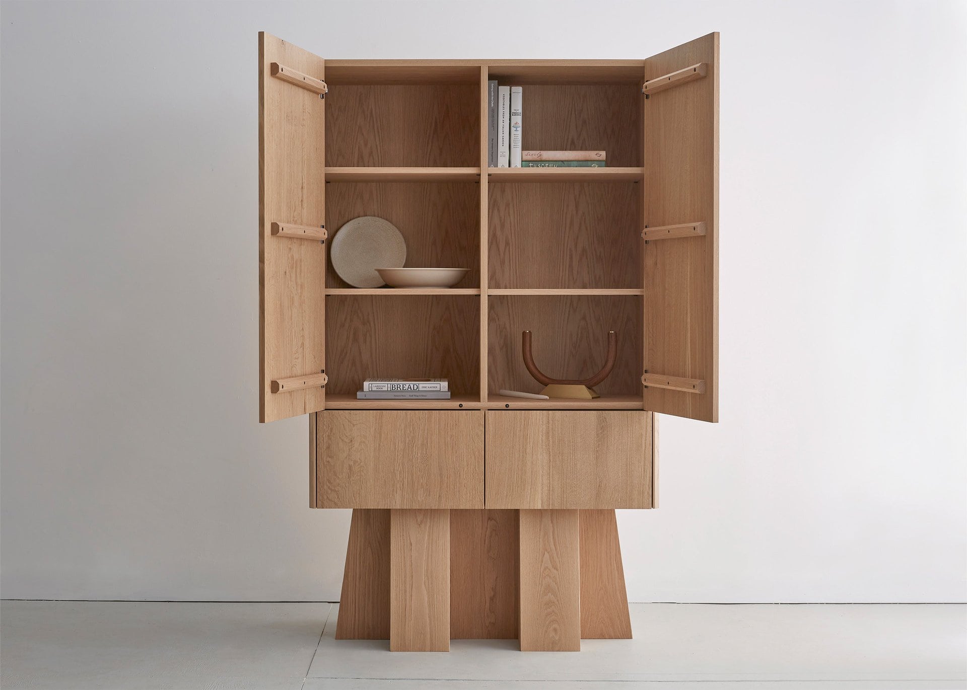 Known as the collector’s cabinet, the Helle cupboard is a versatile storage made of solid hardwood. The monumental form hints at the owner’s precious collection within. It can be configured as an armoire. *Made to order, customization available