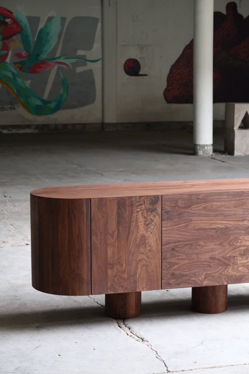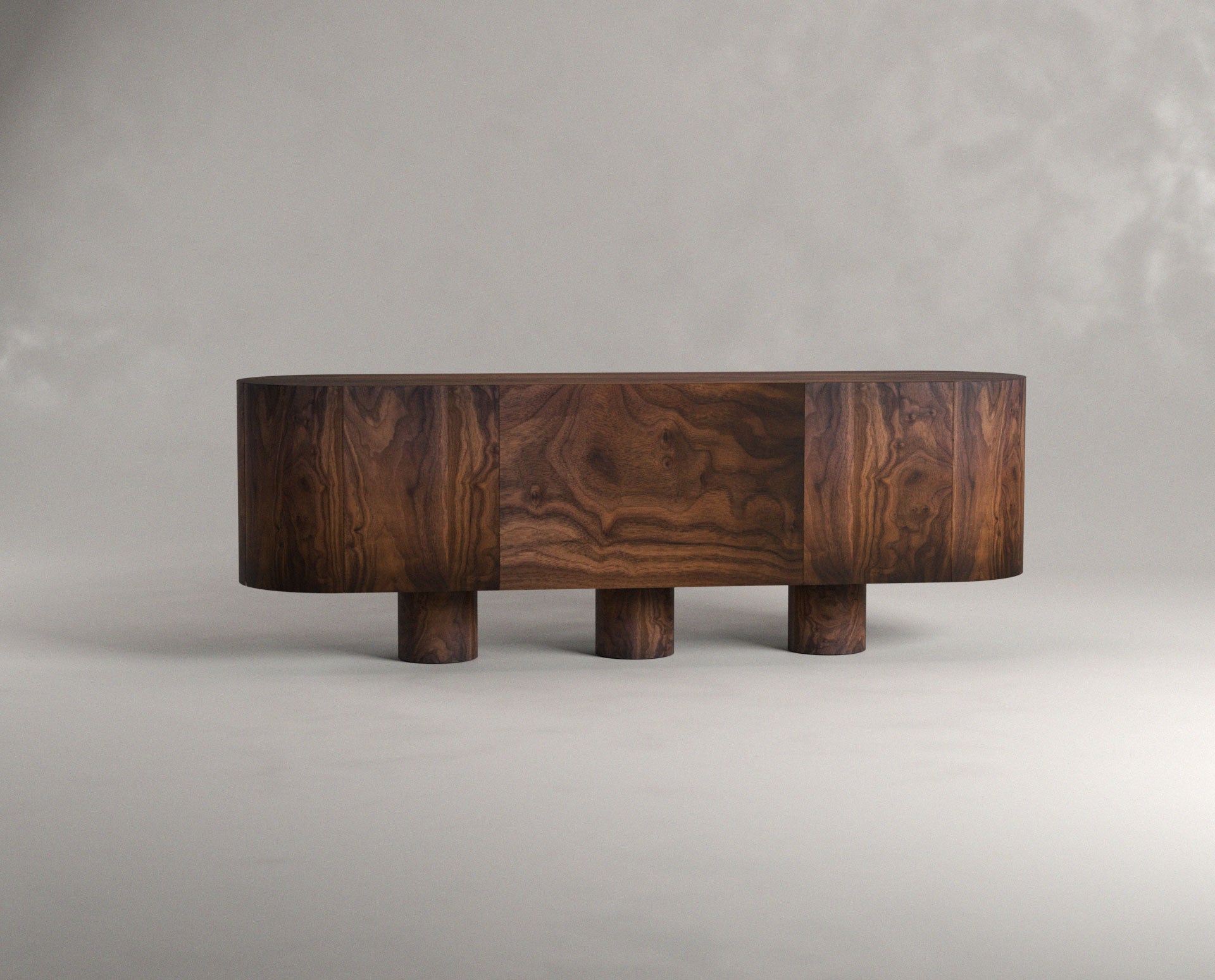 Totem is a collection inspired by ancient, earthy, natural materials. Totems are archaeological sculptures found around Mexico. These precious discoveries are evidence of our timeless creativity and desire to admire and ritualize. The Totem Sideboard is inspired by the relationship between culture and nature. Handcrafted from Walnut, features a rounded console element assembled to its pillar footings, forming a unique totemic element. *Made to order – Lead time 10-12 Weeks